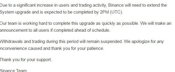 Binance Halts Trading and Withdrawals for an Extended Upgrade